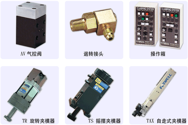 特点 除了换模系统产品以外,FORWELL 也提供了宽广适用范围的空油压组件与设备,这些包括供塑胶注塑模具用,和工件夹具系统使用的套件等等,下面图示说明的产品,如果对您的生产机具有所效用,请与我们联络,做更技术性的了解。