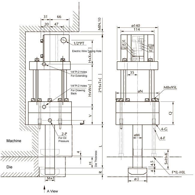 | Model | Clamping force(at 185kgf/cm2) | Requited Qrantity(cc.) | A±1 | MIN.B |