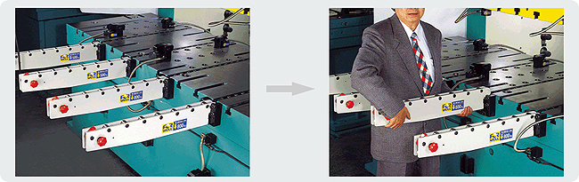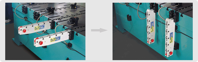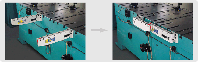The bolster extension makes it easy to move the dies to an accessible area of the press for convenient die changing with a crane or forklift truck. Available in three different designs: detachable RC series, drop-down RD series(alternate model), and folding RE/RF series.