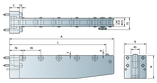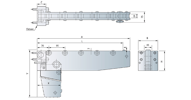 The Die Arms are equipped with hardened rollers to allow for a long service life and accurate die loading. The Die Arms can be selected according to carrying capacity, and are available in three different types: RC detachable type, RD drop-down type and RE/RF folding type.