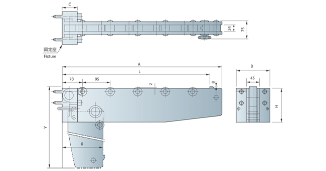 當您使用起重機或叉架昇降機作模具更換時,共有三種不同的型式設計,包括 RC ( 移動式 )、 RD ( 折下式 ) 與 RE/RF ( 旋轉式 ) 系列,可供選用移模臂使用,可以使模具更容易的移到沖床台盤確實位置。