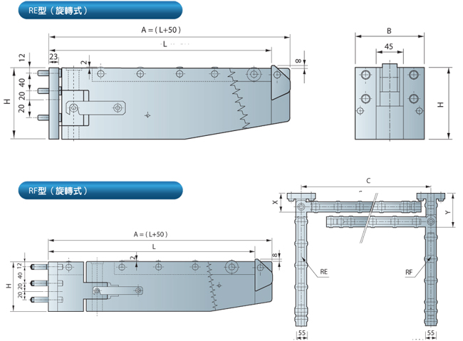 RE/RF ( 旋轉式 ) 移模臂